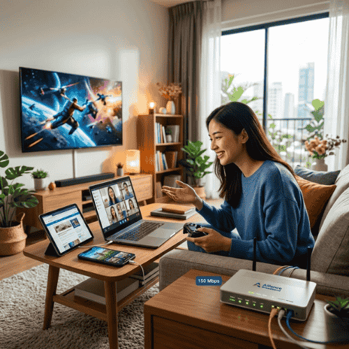 Ideal for families, professionals, gamers, and heavy internet users, Welcome 150 offers the perfect balance of speed, reliability, and performance. With Alliance Broadband’s strong and dependable network, you can enjoy uninterrupted connectivity for all your online needs.